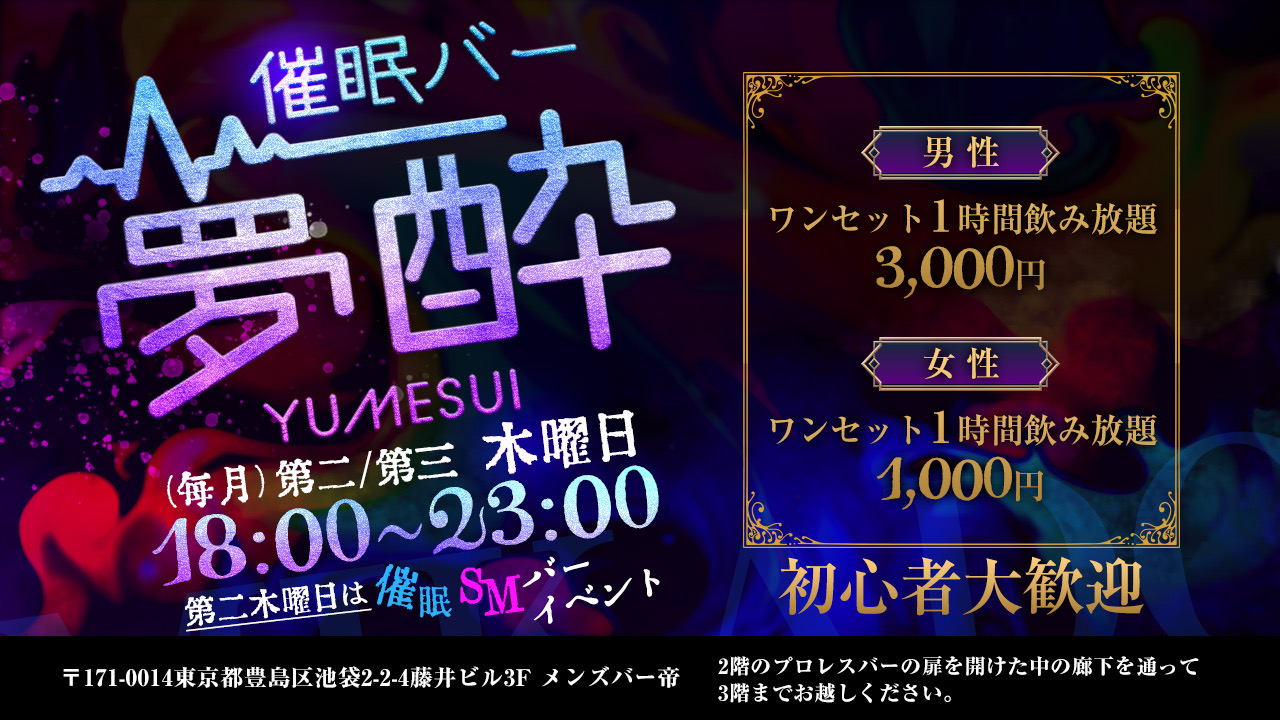 毎月第三木曜日に催眠バー夢酔を営業中!