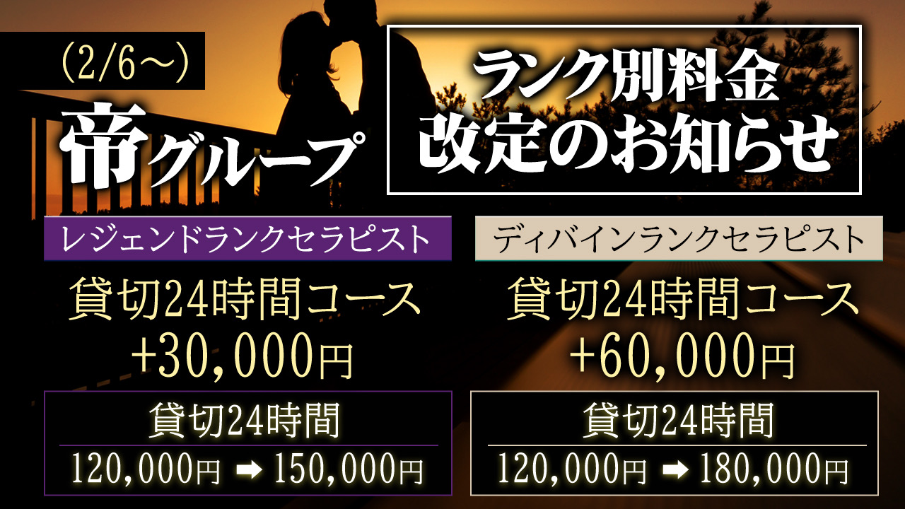 帝グループ・ランク別料金改定のお知らせ 2/6〜