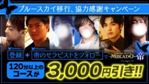 ・Blueskyアカウントを作成のうえ、帝在籍セラピストを1名以上フォローしていただいた方が対象です。