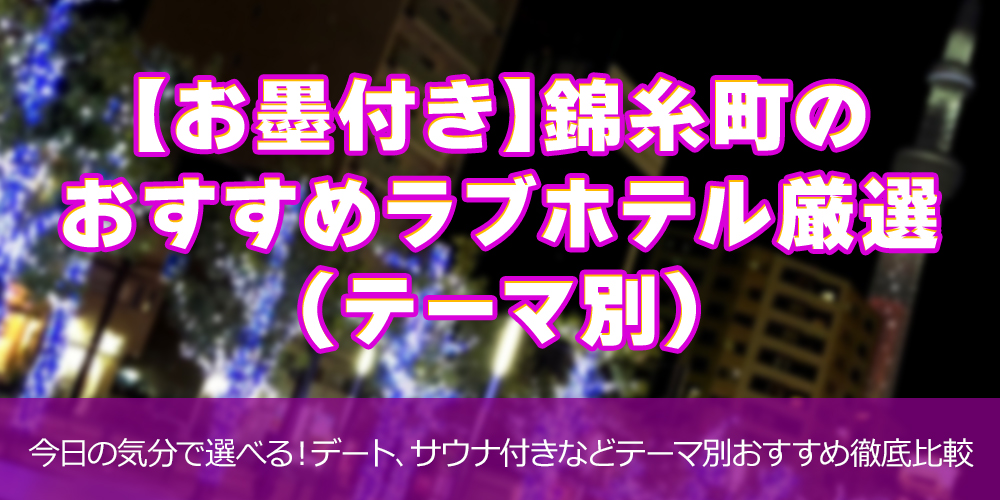 【お墨付き】錦糸町のおすすめラブホテル厳選(テーマ別)