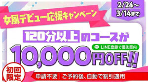 ・120分以上の対象コースが 10,000円OFF